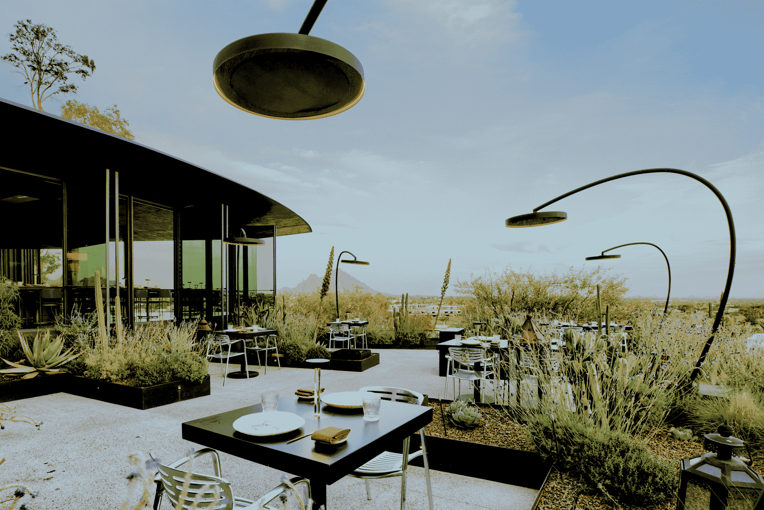 Debido a la naturaleza histórica de la Mansión Wrigley y a sus impresionante vistas sobre el horizonte de Phoenix, encontrar una solución de calefacción que no afectara al diseño y a la atmósfera del espacio era crucial. “Somos muy conscientes de que en Bromic tienen el mejor diseño en calefactores”, señala Wendall. Junto con los expertos en calefacción de Bromic, se presentó a Burnette el nuevo Eclipse Smart-Heat Portable, la unidad eléctrica portátil cuyo diseño elegante y moderno tal vez solo se vea superado por la innovadora inclusión de la iluminación regulable LED.