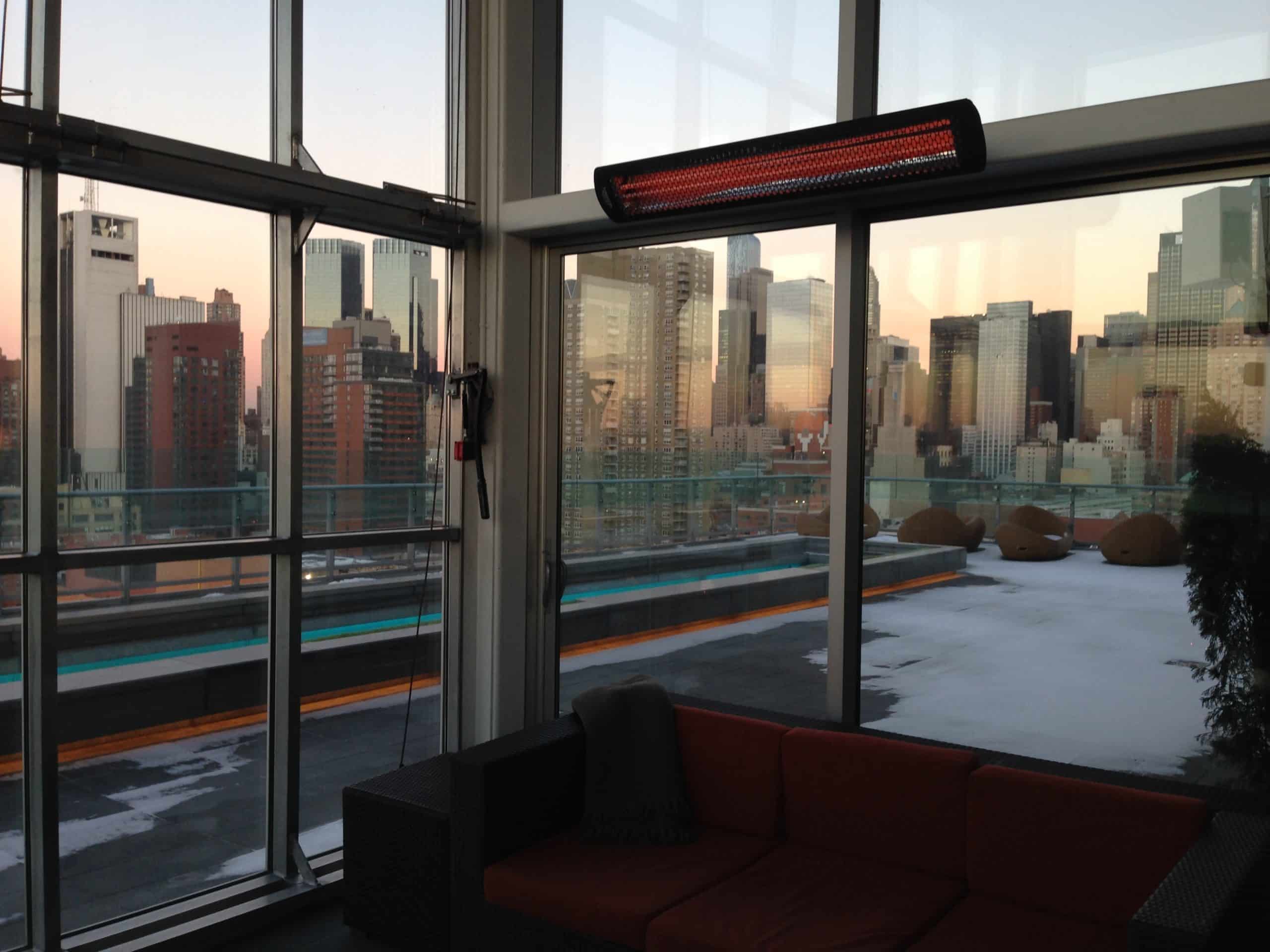 El Print de Nueva York, denominado el «cielo en Hells Kitchen», situado en una antigua fábrica de impresión, ofrece a sus comensales comida estadounidense moderna, sostenible, orgánica y de temporada. Con ingredientes obtenidos por personal del restaurante en mercados locales y regionales. El diseño del restaurante es un reflejo de su alma, con materiales de calidad en un entorno elegante. Asomándose al río Hudson, las zonas exteriores del Print están expuestas a las inclemencias de Nueva York. Para que sus comensales puedan sacar el máximo provecho a los increíbles espacios exteriores y disfrutar de las vistas, el Print ha instalado calefactores Bromic Tungsten Smart-Heat™ Electric (6.000 W) en toda la terraza y en la zona de la piscina.