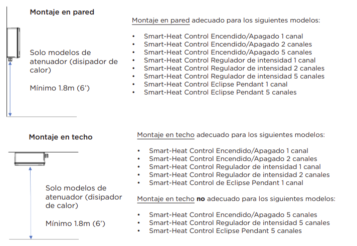 El dispositivo ON/OFF de 1 canal (6 kW) es compatible con 2 calefactores eléctricos Platinum.